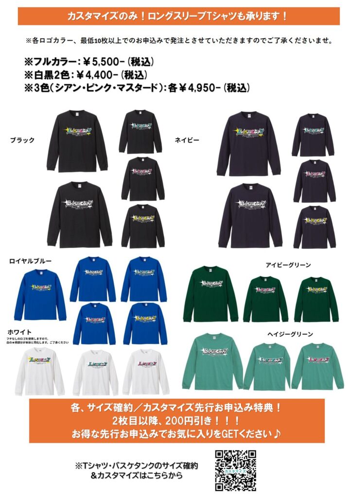 POPロゴTシャツ:ロゴ×ボディカラーの組み合わせを承ります! ロングスリーブTシャツもご用意あり!組み合わせは下記画像をご参照ください!